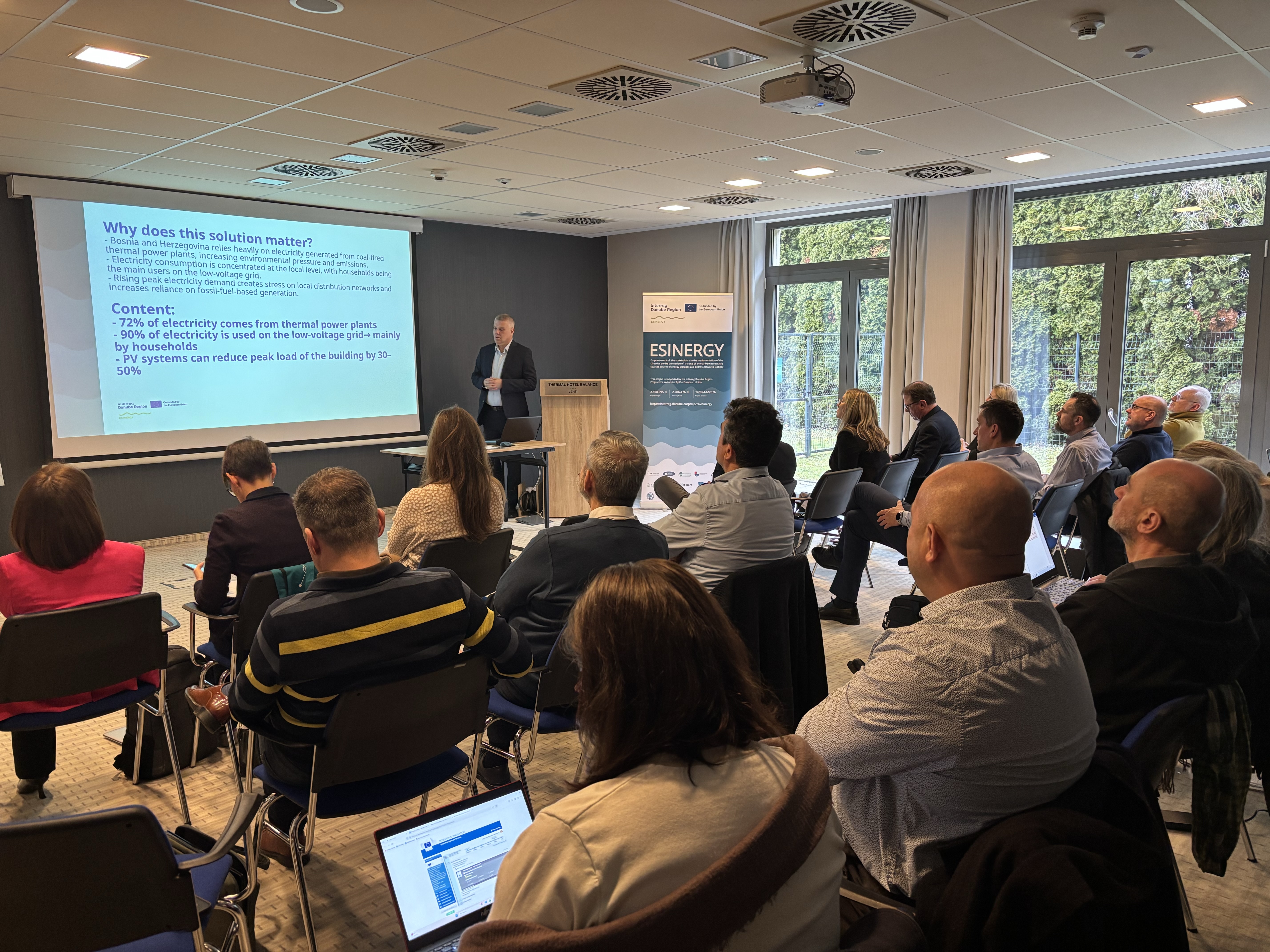 Partneri ESINERGY projekta iz 16 zemalja (Hrvatska, Slovenija, Austrija, Nemačka, Mađarska, Slovačka, Bugarska, Rumunija, Srbija, Bosna i Hercegovina, Crna Gora i Ukrajina) okupili su se 5–6. februara 2026. godine u Lentiju (Mađarska) na dvodnevnom transnacionalnom sastanku partnera, sa ciljem finalizacije pilot-rešenja, jačanja primene politika i pripreme završne faze realizacije projekta.